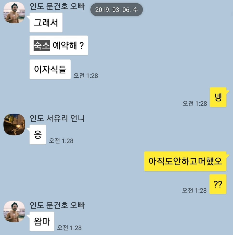 퇴사 후 여행 계획을 짤 때 조용히 생각 좀 하고 싶기도 하고 해외에 오래 나가보고 싶기도 해서 태국 한 달 살기나 2달 정도 동남아 일주로 생각하고 있었다. 그런데 어느 날 페이스북에서 인도 같이 가자는 글을 보게 되고 뭐에 홀린 것 마냥 5분 만에 메시지를 보냈고 별다른 검색도 안 해보고(사실 좀 뒤져봤는데 몇 개 안 나와서 포기ㅋㅎ 분발해라 문건호) 다음 날 가겠다는 확답과 연락처를 넘겼다. 이제 와서 페이스북 메시지를 읽어보니, 비용에 어떤 게 포함되어있는지, 운영자의 신상이라든지 이런 건 하나도 안 물어봤다. 정말 미친 듯 ; ㅎ