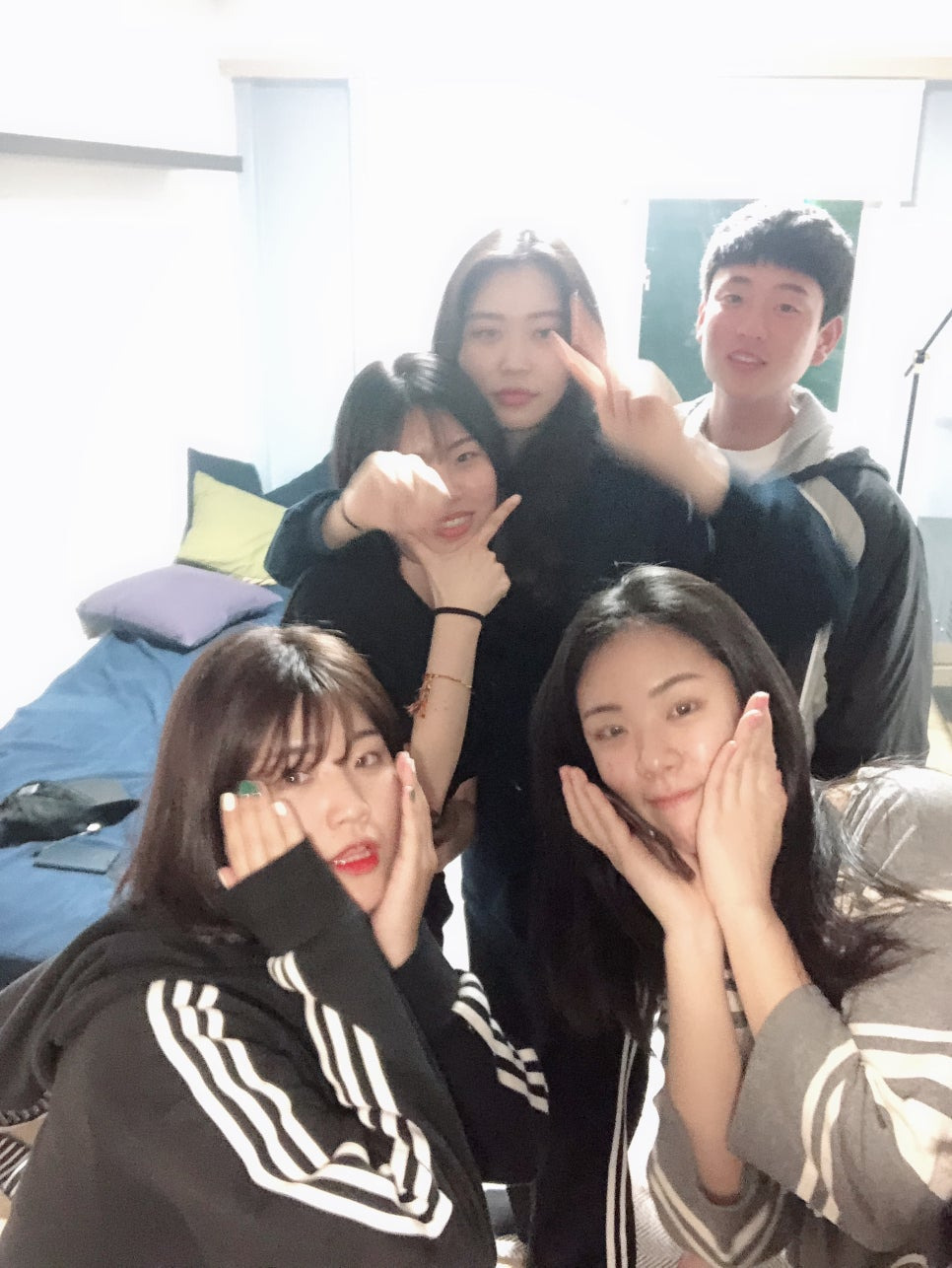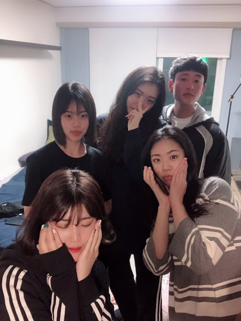 그리고 어느 정도 맛탱이 간 김진엽이 자꾸 나가서 아이스크림 같은 걸 사 왔다. 부족한 술도 사 오고 왔다 갔다 하는 바람에 분위기가 어수선해지면서 자리 정리하면서 갑분 셀카 타임.. 이제 보니 사진에서 술 냄새나. 아직 좀 덜 친해서 어색한 게 보여서 웃기다ㅋㅋㅋㅋ