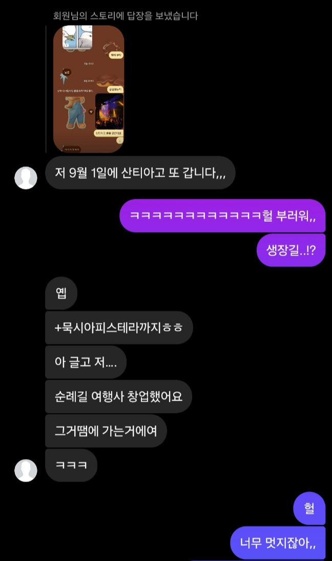 산티아고에서 만났던 K가이드 진현님이 결국! 본인 회사를 차렸다고 했다. 당시에도 순례길이 좋고 순례길 회사 차리고 싶어서 휴학하고 가이드 하고 있다고 했었고, 미래에 대해서 엄청 고민하고 있었던 기억이 남. 까미노 길에서 도움도 많이 받아서 잘 됐으면 좋겠다고 생각했는데 너무너무 잘됐다. 나이도 어린데 너무 멋지다. 앞으로 더 잘되었으면..!! 까미노 길에서 마주쳤으면 좋겠다.