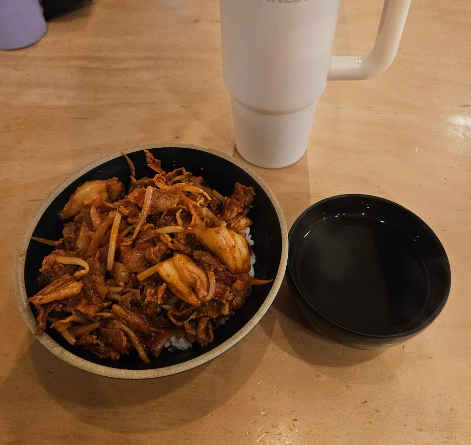 점심 제육볶음이었는데, 매니저님이 우리꺼만 김치 넣어서 김치제육으로 해줌 ㅋㅋㅋㅋ 조금만 달라니까 엄청 많이 줘가지고,, 남은 거 저녁에 먹으려고 담아왔다.