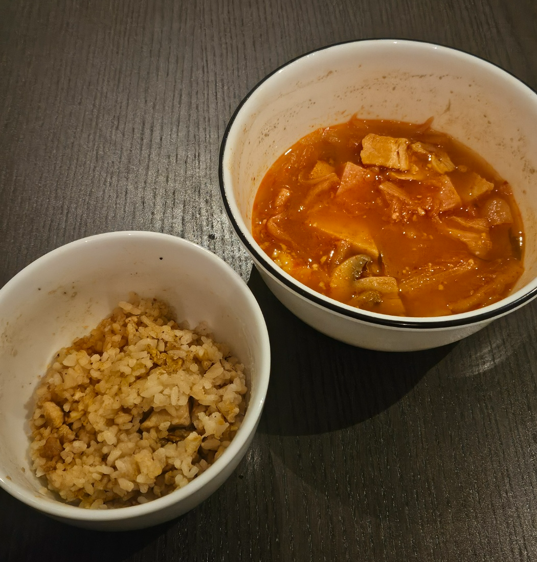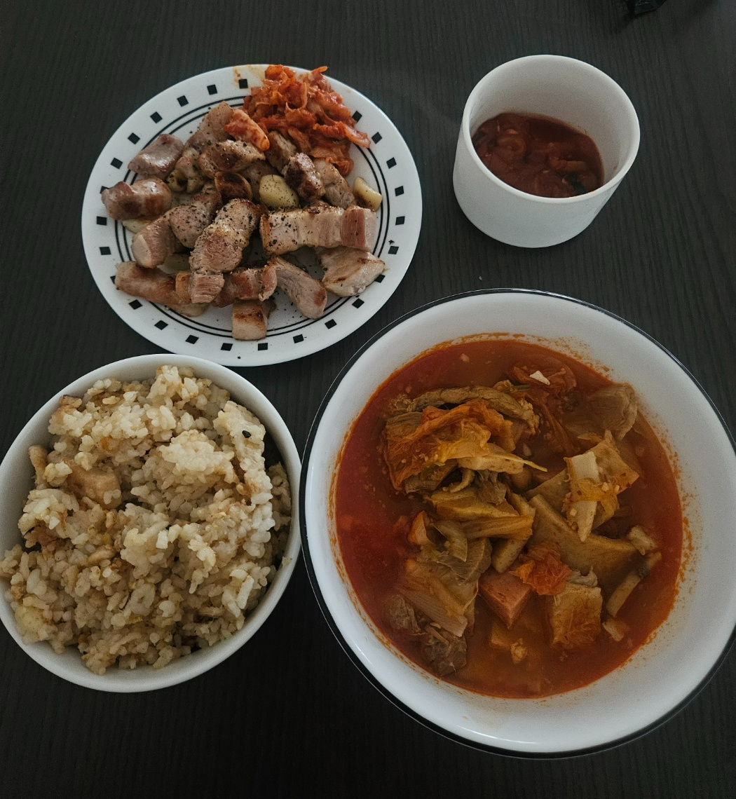 그리고 낮에 삼겹살을 너무 많이 먹었더니 밥이랑 부찌가 좀 남아서 저녁에 남은거 먹어줬다.