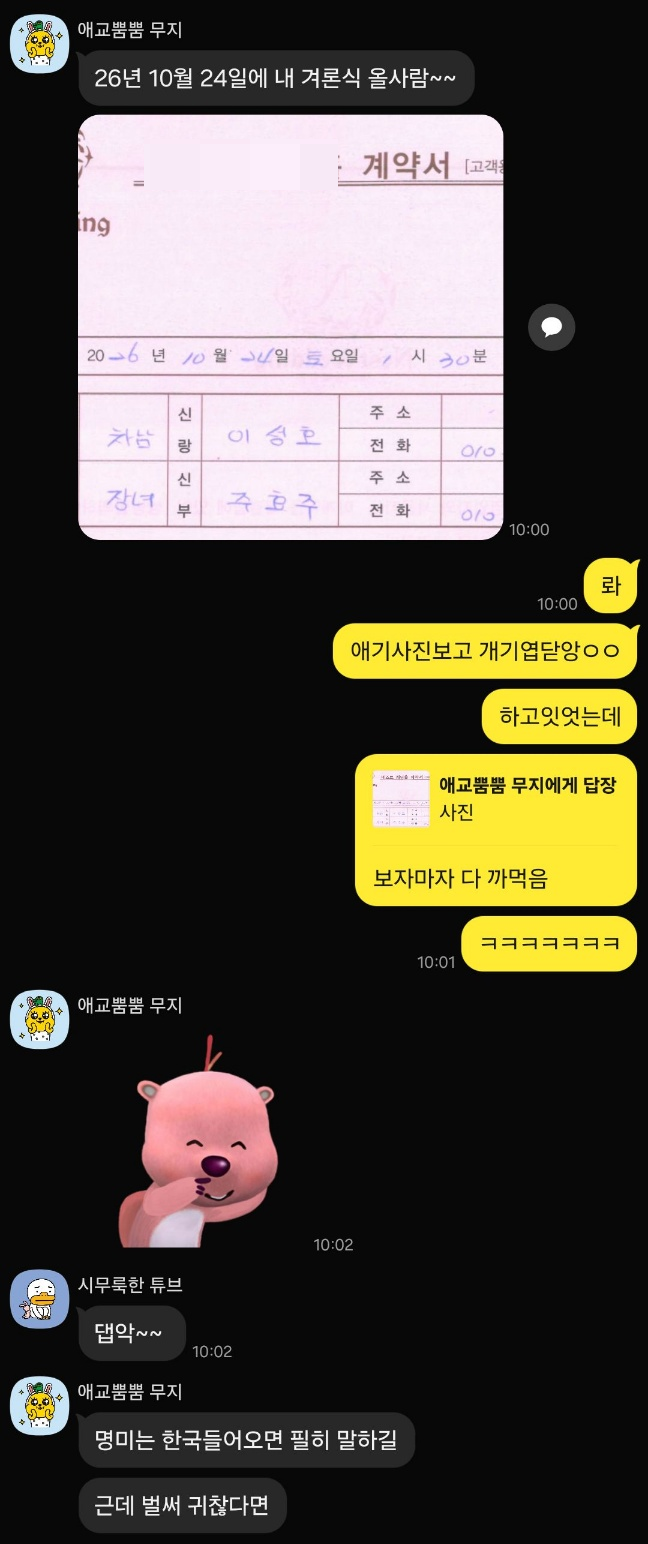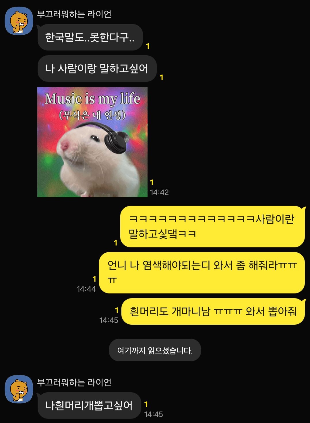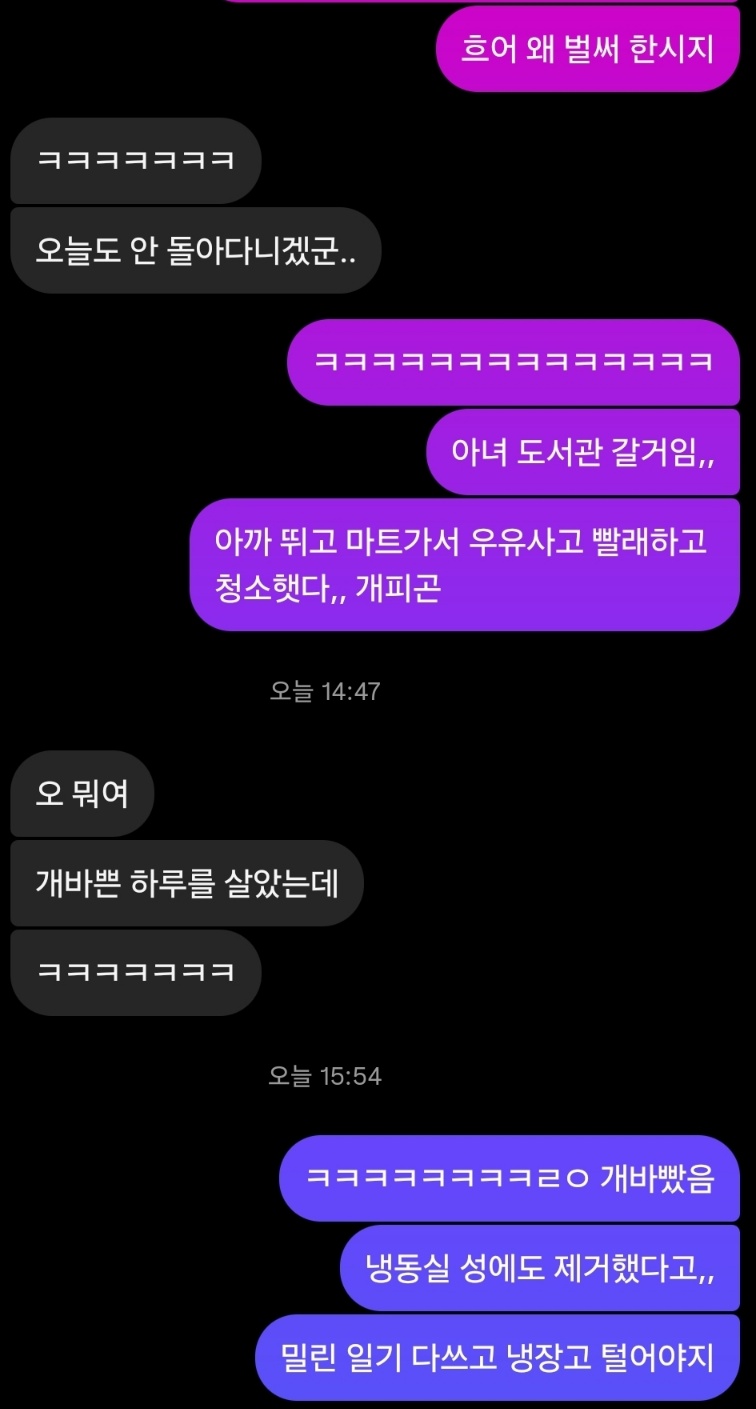 효주룩이 갑자기 결혼 발표를 하면서 살아난 단톡방ㅋㅋㅋ 최근 거울만 보면 눈 마주치는 새치들 때문에 빨리 염색해야겠다고 생각하는 요즘.. 내일 진짜 해야지. 염색해주고 흰머리 뽑아주던 스지매가 넘 그립당.. 그리고 광주집 베란다에서 새벽 네시까지 쏘맥 마시면서 수다 떨어야 하는데 흑ㅜㅜㅜㅜ 암튼 효주륵 잘 가.. 아니 가지 마.... 아냐 가든 안 가든 행복만 하렴😭