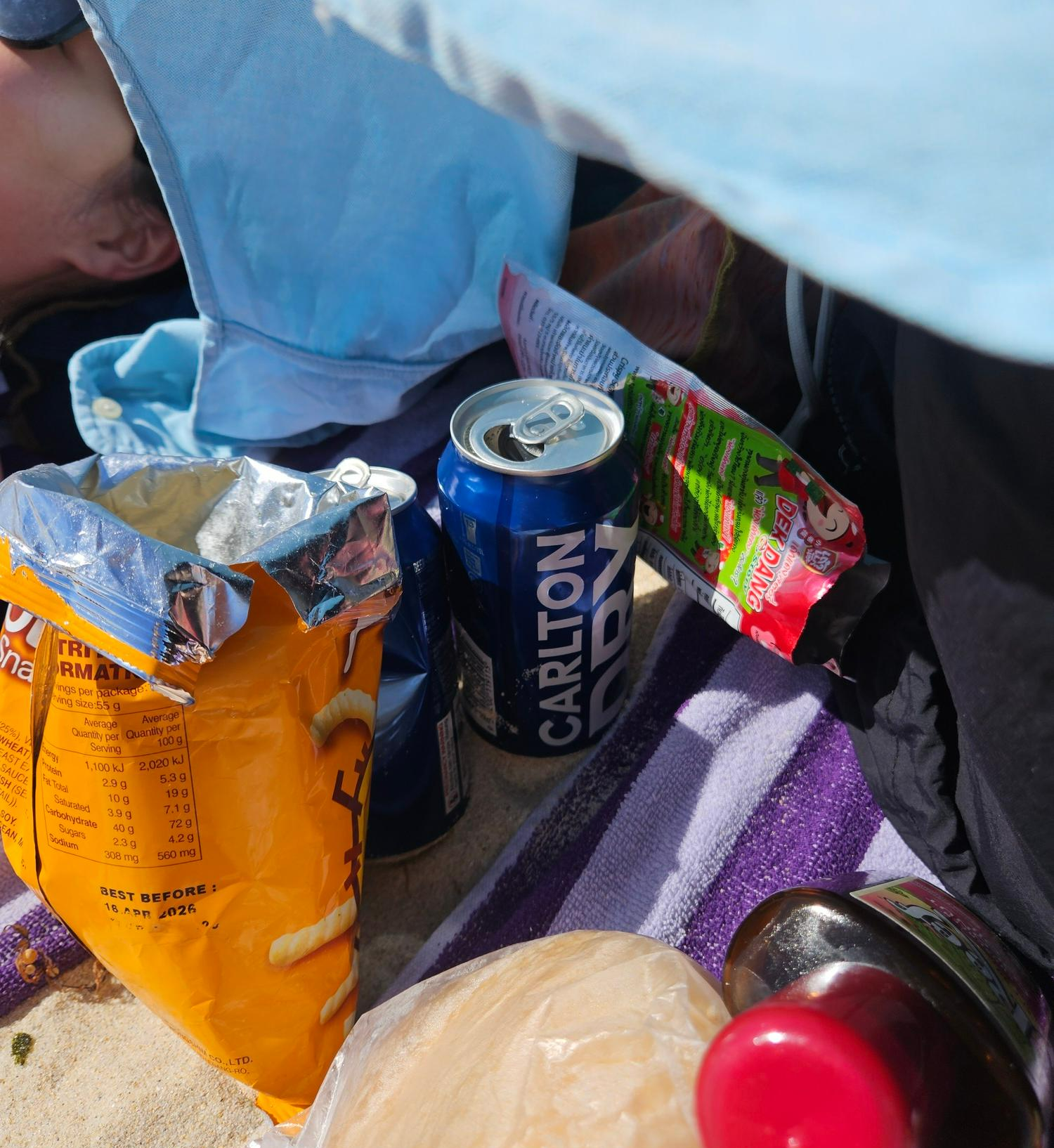 그리고 집에 와서 도서관 갈까말까 고민하던 와중 지민님이 바다가서 태닝하자고!! 연락이 왔다. 이런 기회 놓치면 안 되기 때문에 냅다 따라 나섬. 흐흐집에 있는 맥주랑 과자랑 이것저것 대충 챙겨서 호다닥 나왔다.